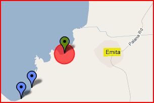 - 323kms north east of Hobart on Flinders Island and 2kms east is Emita.