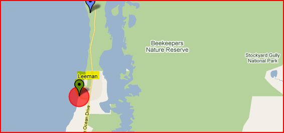 - 238kms north north west of Perth and 2kms north north east is Leeman.