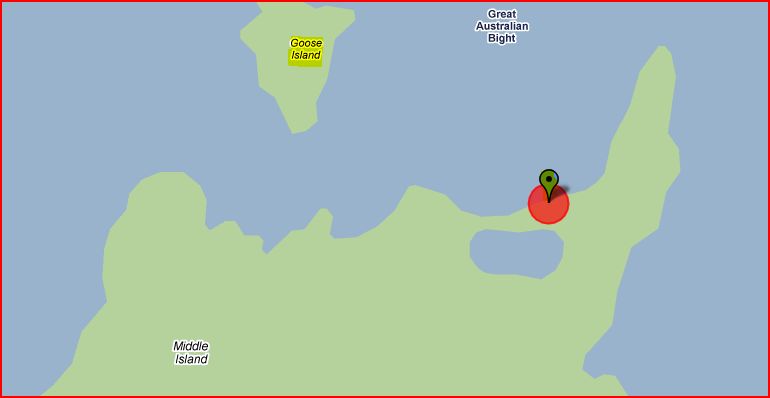 - 724kms east south east of Perth on Middle Island and 2kms west north west is Goose Island.