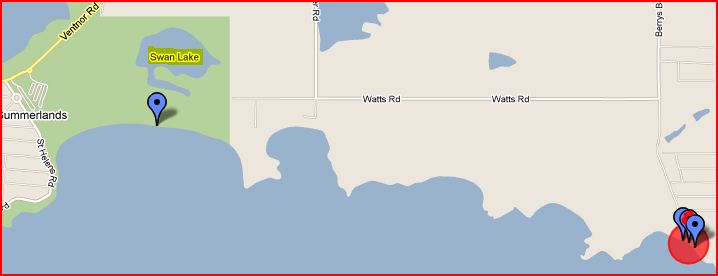 - 81kms south south east of Melbourne on Phillip Island and 4kms west north west is Swan Lake.