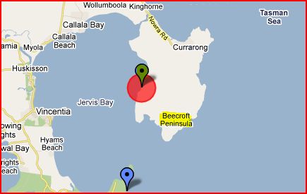 - 153kms east of Canberra on Jervis By and 5kms south east is Beecroft Peninsula.
