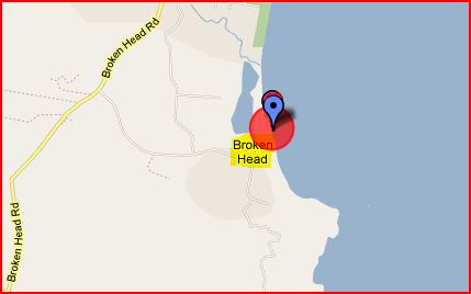 Brays Beach - 617kms north north east of Sydney and within 1km is Broken Head.
