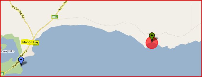 Butlers Beach - 140km west south west of Adelaide and 12kms west is Marion Bay.