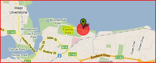 Buttons Beach - 214kms north north west of Hobart and within 1km is Fairway Park.