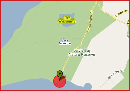 - 141kms east of Canberra within the Jervis Bay Nature Reserve and 3kms north is Lake Windermere.
