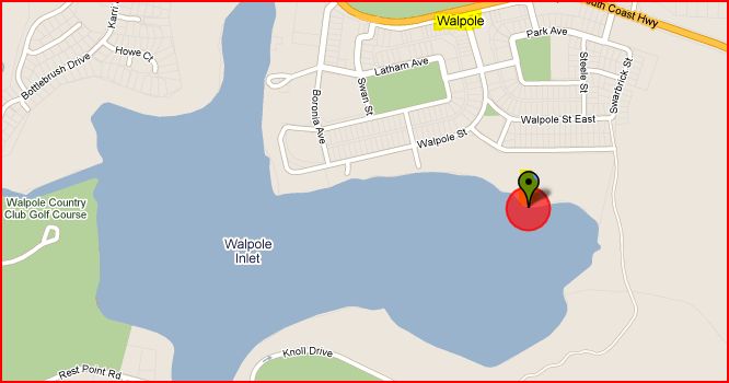 - 347kms south south east of Perth on the Walpole Inlet and within 1km is Walpole.