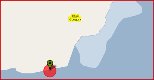 Congora Beach - 2,148kms north north west of Brisbane and 2kms north north east is Lake Congora.