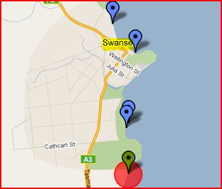 Cowrie Beach 2 - 105kms north east of Hobart and 2kms west is Kates Berry Farm.