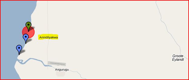 - 626kms east of Darwin on Groote Eylandt and within 1km is Anindilyakwa.