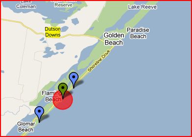 Flamingo Beach - 211kms east south east of Melbourne and 8kms North is Dutson Downs.