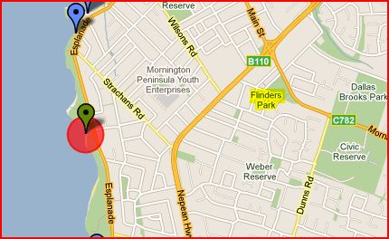 Fosters Beach - 48kms south south east of Melbourne and 2kms east north east is Flinders Park.