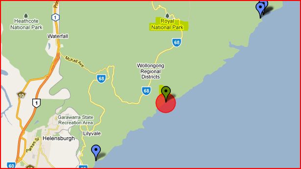 Garie Beach - 36kms south south west of Sydney and within Royal National Park.