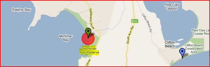 Gorringes Beach - 17kms east south east of Hobart and within 1km is Mortimer Bay Reserve.