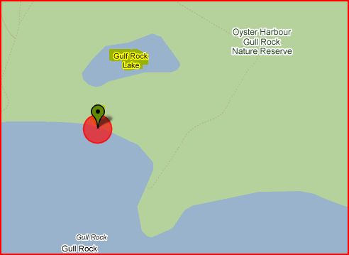 - 394kms south south east of Perth within the Oyster Harbour Gull Rock Nature Reserve and within 1km is Gulf Rock Lake.