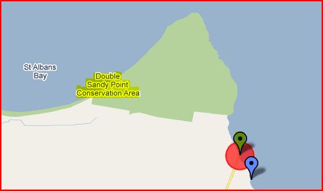Lades Beach - 214kms north of Hobart and within 1km is Double Sandy Point Conservation Area.