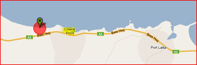 Little Peggs Beach - 279kms north north west of Hobart and within 1km is Cowrie Point.