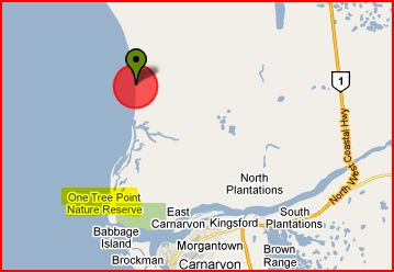 - 824kms north north west of Perth and 7kms south is One Tree Point Nature Reserve.