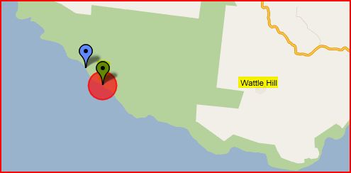 Moonlight Beach - 186kms west south west of Melbourne and 3kms east is Wattle Hill.