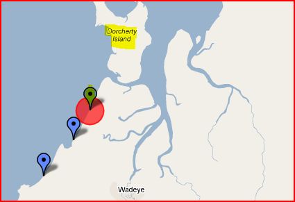 - 240kms south west of Darwin and 7kms north north east is Dorcherty.