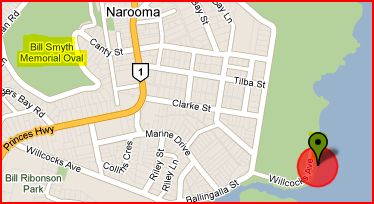 Narooma Beach - 281kms south south west of Sydney and within 1km is Bill Smyth Memorial Oval.