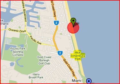 Nobby Beach - 78kms south south east of Brisbane and within 1km is Mick Schamburg Park.