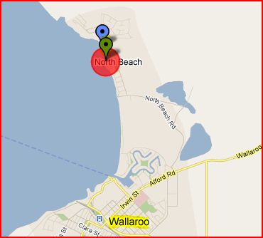North Beach - 145kms north west of Adelaide and 4kms south is Wallaroo.