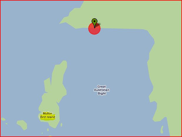 Noyhener Beach - 123kms west south west of Hobart and 3kms south south west is Mutton Bird Island.