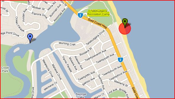 Pacific Beach - 84kms south south east of Brisbane and within 1km is Tallebudgera Recreation Camp.