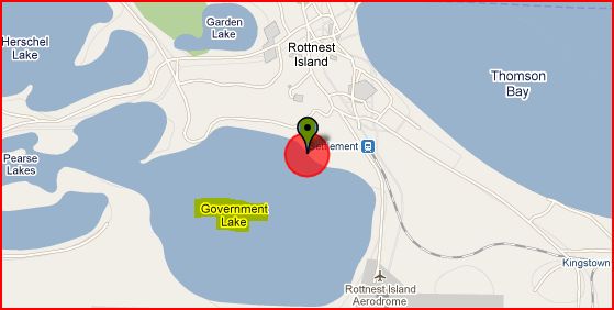 - 31kms south west of Perth on Rottnest Island within Government Lake.