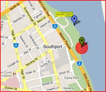 Pelican Beach - 70kms south south east of Brisbane and within 1km is ANZAC Park.