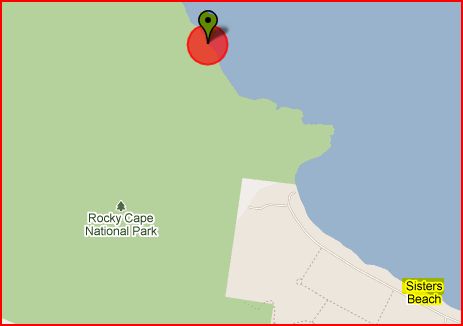 Razor Beach - 264kms north north west of Hobart within the Rocky Cape National Park and 3kms south east is Sisters Beach.