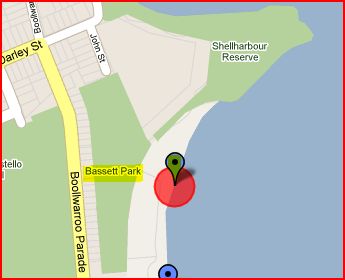 Shellharbour Beach - 86kms south south west of Sydney and within 1km is Bassett Park.