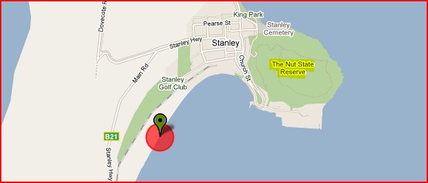 Tatlows Beach - 289kms north north west of Hobart and within 1km is The Nut State Reserve.