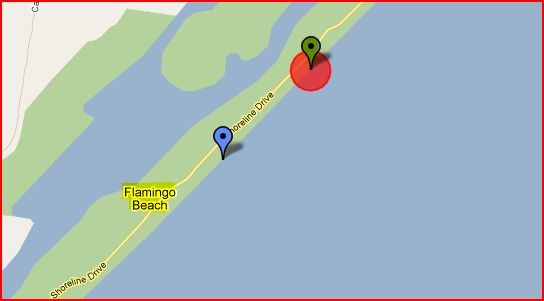 The Wreck Beach - 214kms east south east of Melbourne and 3kms south west is Flamingo Beach.