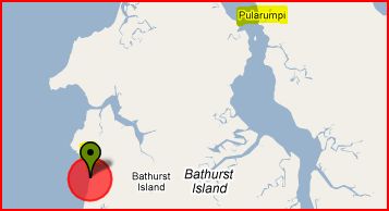 - 119kms north west of Darwin on Bathurst Island and 30kms north east is Pularumpi.